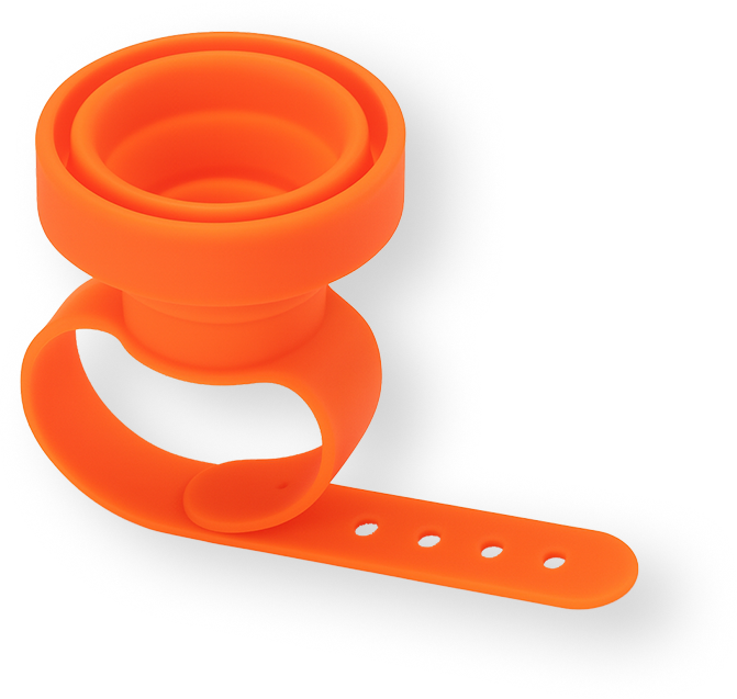 Introducing the Silicone Collapsible Cup, also known as the Shot Watch. This shot glass can be worn comfortably, making it perfect for parties and outdoor activities. With its collapsing aspect, the Shot Watch will never get in your way. Just pop it up once for a single shot (1.5 fl oz), twice for a double (3.0 fl oz). Ideal for shots on the go!